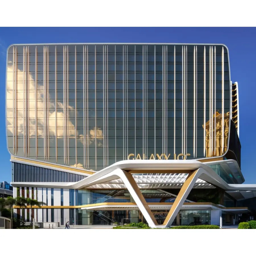 Unregelmäßig geformte Aluminium-Einzelpaneele unterstützen die Verarbeitung komplexer gekrümmter Oberflächen, einschließlich einfach gekrümmter und doppelt gekrümmter Oberflächen, und ermöglichen die Schaffung optisch auffälliger Gebäudefassaden. Sie können auch für unregelmäßig geformte Vorhangfassaden im Innenbereich individuell angepasst werden und passen sich an Lobbys mit hohen Decken, Atriumdesigns, Aufzughallen und andere Innenräume an, wobei architektonische Funktionalität mit ästhetischem Design in Einklang gebracht wird und die Einschränkungen traditioneller planarer Vorhangfassaden durchbrochen werden.